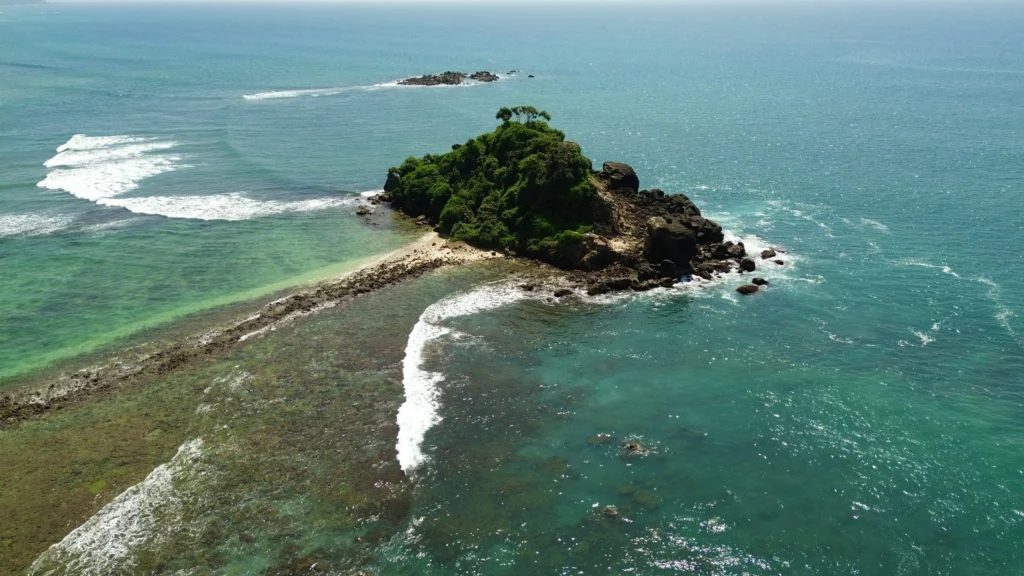 Scenic surf spot in Mirissa Sri Lanka near iconic Parrot Rock.